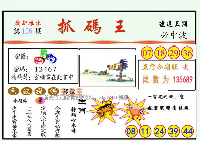 126期:六肖中特【马羊虎牛猴】开:兔39准